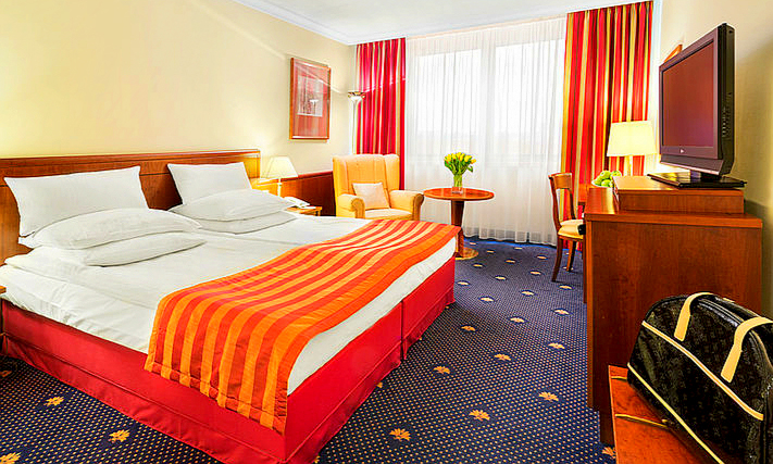 Die Gäste residieren in zentraler Lage, nur wenige Minuten vom historischen Stadtzentrum und der Prager Burg entfernt. Das Diplomat Hotel Prague erhebt sich über mehrere Stockwerke und bietet einen herrlichen Blick auf die tschechische Hauptstadt und ihre vielen Sehenswürdigkeiten. Die komfortablen Superior-Zimmer sind rund 24 qm groß und mit Safe, Klimaanlage, Haartrockner und Satelliten-Fernseher mit 3 HBO-Kanälen ausgestattet. Im 9. Stock gelegen, haben die Besucher von dort einen tollen Ausblick auf die Stadt und die berühmte Burg. Das Fitness-Studio steht Groupon-Kunden ebenfalls zur Verfügung. Für das leibliche Wohl wird im Hotel selbstverständlich auch gesorgt: Das Hotel verfügt mit drei Restaurants und einem Café über ein reiches kulinarisches Angebot. Im Deal enthalten ist ein 3-Gänge-Menü im hoteleigenen CD-Restaurant sowie zwei Gläser Wein, die den Gästen am Anreisetag gereicht werden. Das Restaurant serviert tschechische und internationale Küche, kombiniert in fantasievollen Menüs.