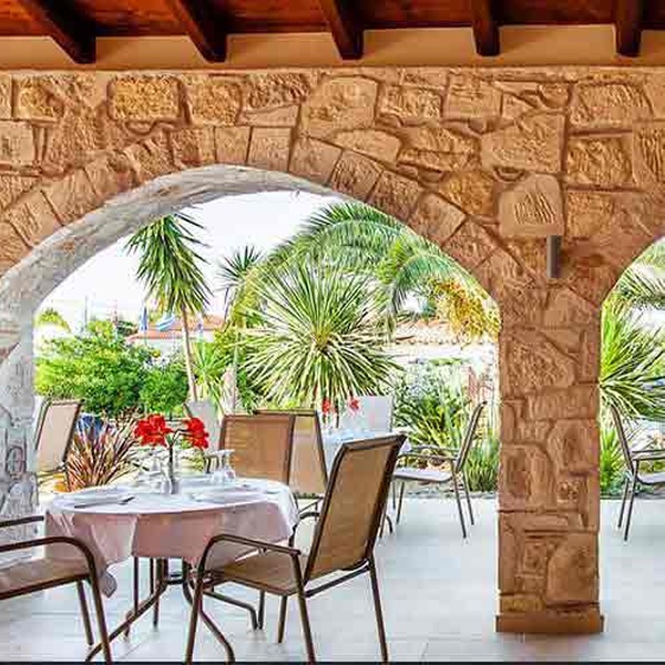 Im hoteleigenen Restaurant werden typisch griechische und saisonale Spezialitäten serviert. Eine Pool-Bar sowie ein Bistro stehen den Gästen ebenfalls zur Verfügung.