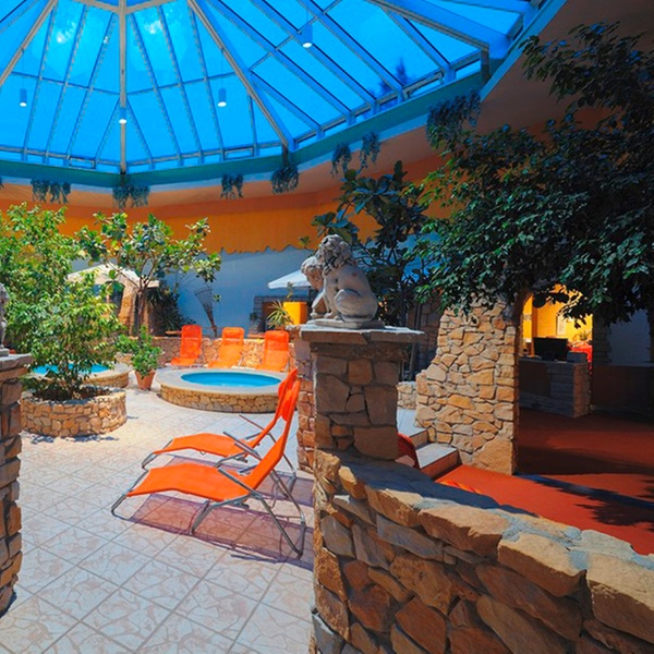 In allen Optionen inklusive: Preis für 2 Personen im Doppelzimmer, Halbpension (inkl. Getränk zum Abendessen: 0,2 L Softdrink), Wasser, Rot-/Weißwein, 0,3 L Bier, 1x wahlweise Wüstensandbettliege oder Magnetfeldtherapie oder Massagestuhl (Dauer je ca. 20 Min), ganztägiger Eintritt in die 4500 m² große mediterrane Wellnessoase mit Schwimm-/Bewegungsbad 15x5 m, Hotelschwimmbad 14x5 m ab 7.00 Uhr geöffnet) Salzsauna 60°C, Farblichtsauna 95°C, Edelsteinsauna 85°C, Tauchbecken, Eisgrotte mit Eisbrunnen, ligurischer Garten unter einer Glaskuppel mit Fußbecken, Laconium 40°C, Außensauna mit Himalaya-Salzsteinen 75°C mit Farblicht, Erlebniswasserfall und Liegewiese, separate Relax- und Ruhezonen, täglich 20 Minuten Wassergymnastik, Nutzung des Sportstudios „Fit & Well“ (nur für Gäste ab 16 Jahre), kostenfreies Parken nach Verfügbarkeit und WiFi.