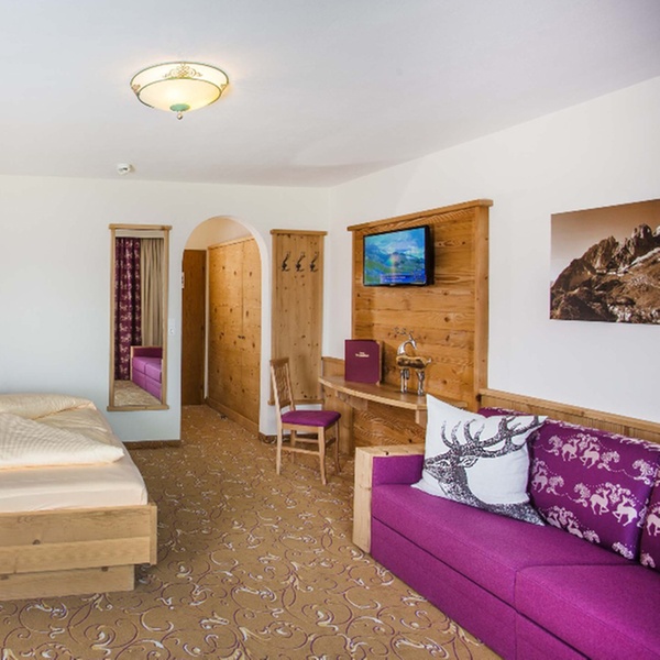 In allen Optionen inklusive: Preis für 2 Personen im Standard-Doppelzimmer oder Standard-Vierbettzimmer, Halbpension bestehend aus Frühstück und Dinner, 1x 20% Ermäßigungsgutschein für Skiverleih (p. P.)