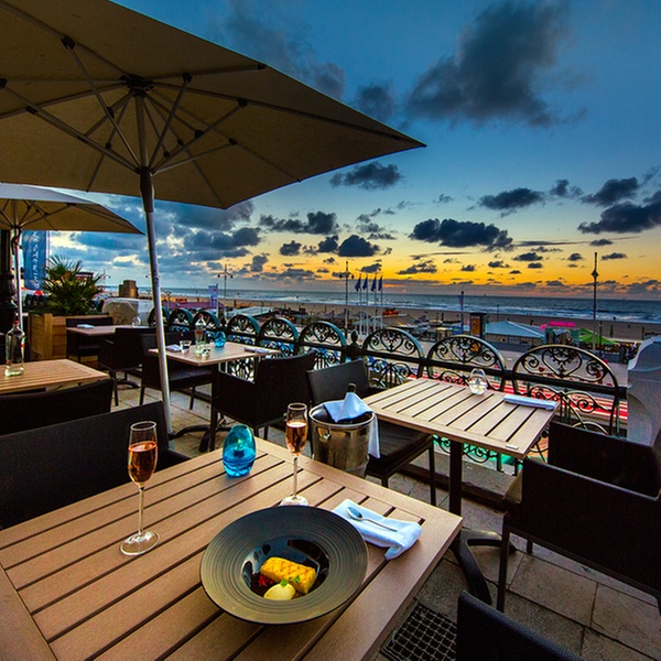 Im Restaurant „Waves“ mit Bar und Wintergarten mit der größten Terrasse von Scheveningen werden exquisite Gerichte serviert. Die Gäste können den Abend in der Outdoor-Bar mit dem Blick auf die Nordsee bei einem Cocktail ausklingen lassen.
