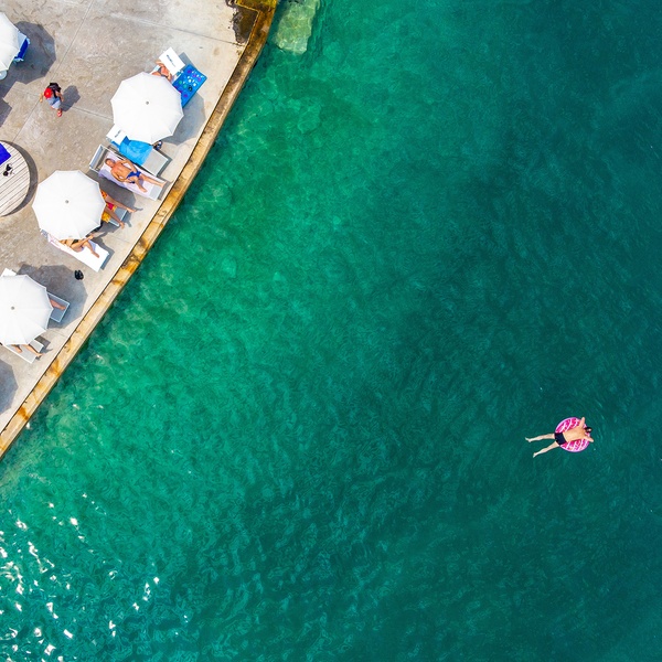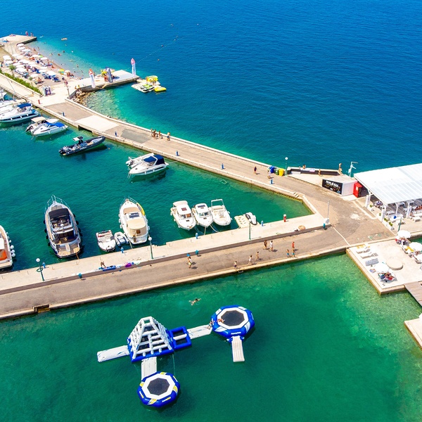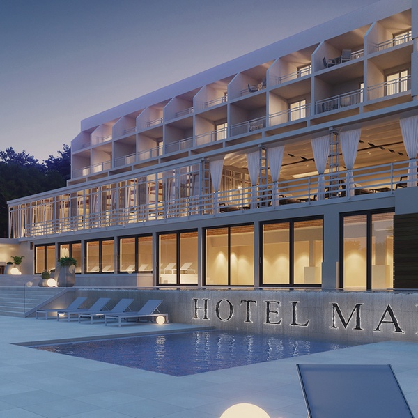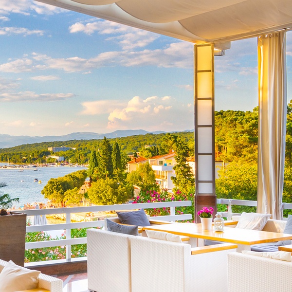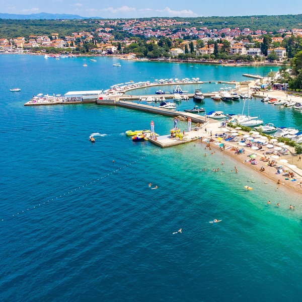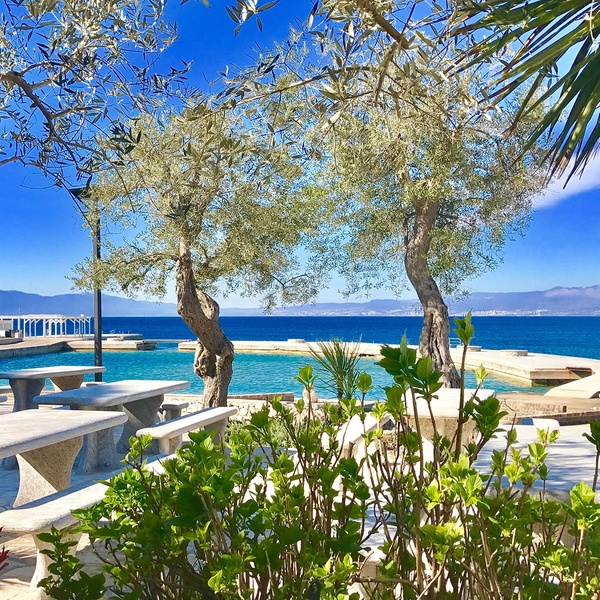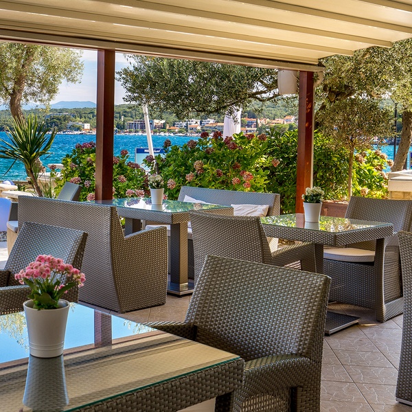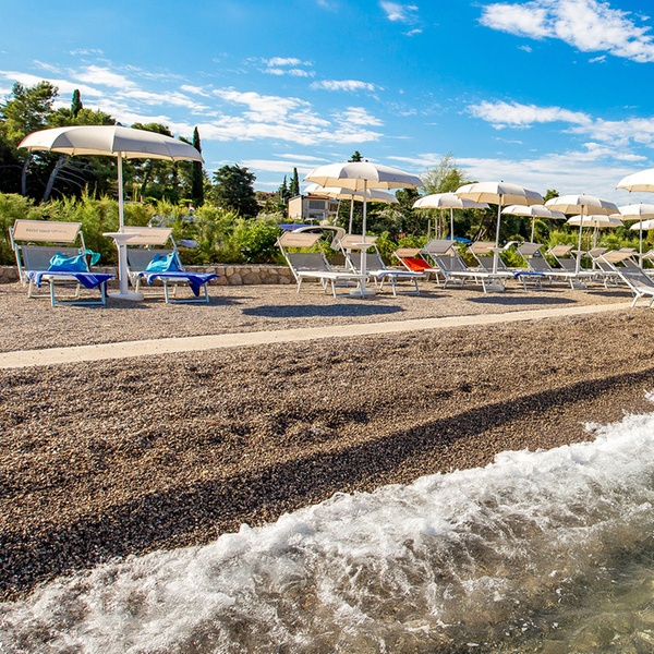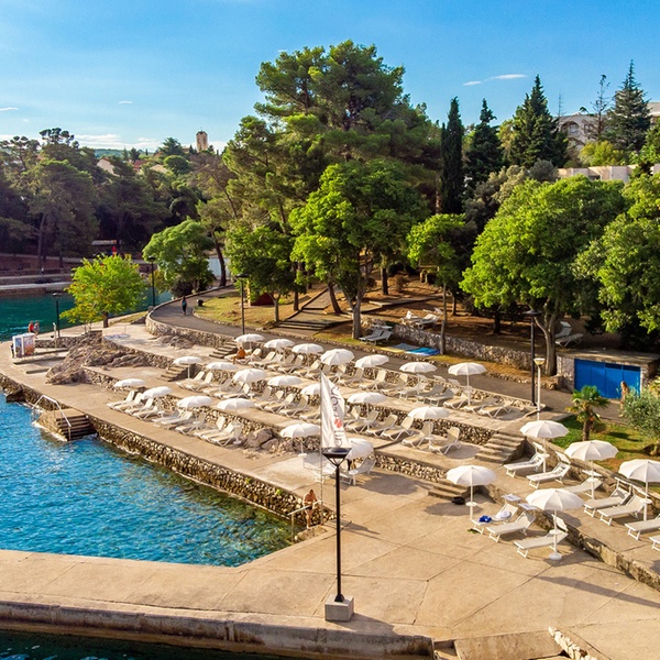 Der Strand liegt nur zwei Gehminuten vom Hotel Malin entfernt. Und auch das Zentrum vom Küstenstädtchen Malinska ist nach einem kurzen Spaziergang erreicht. Das elegante Hotel liegt eingebettet in üppiger Vegetation.