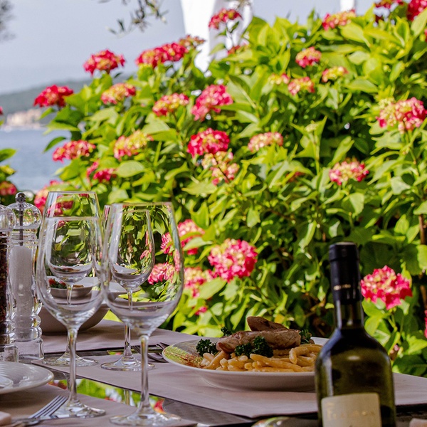 Im oberen Stockwerk liegt das Restaurant Royal und beglückt die Gäste mit vielfältigen kulinarischen Genüssen. Ein besonders Highlight ist der Panoramablick auf die Kvernerbucht. Im Mulino kann in grüner Umgebung Meeresfisch verkostet werden. Die Pool- und die Strandbar sorgen auch in Wassernähe für Erfrischung. Das Hotel bietet verschiedene Außen- und Innenpools. Dazu gibt es einen gemütlichen Wellness-Komplex mit Sauna und einem reichhaltigen Angebot an Gesichts- und Körperanwendung. Während der Sommermonate wird für die kleinen Gäste ein besonderes Unterhaltungsprogramm mit Workshops und spannenden Aktivitäten angeboten. Aktivurlauber können im Hotel ein Boot mieten oder Touren in die reizvolle Umgebung buchen. Auf keinen Fall sollte man einen Abstecher nach Rijeka versäumen.