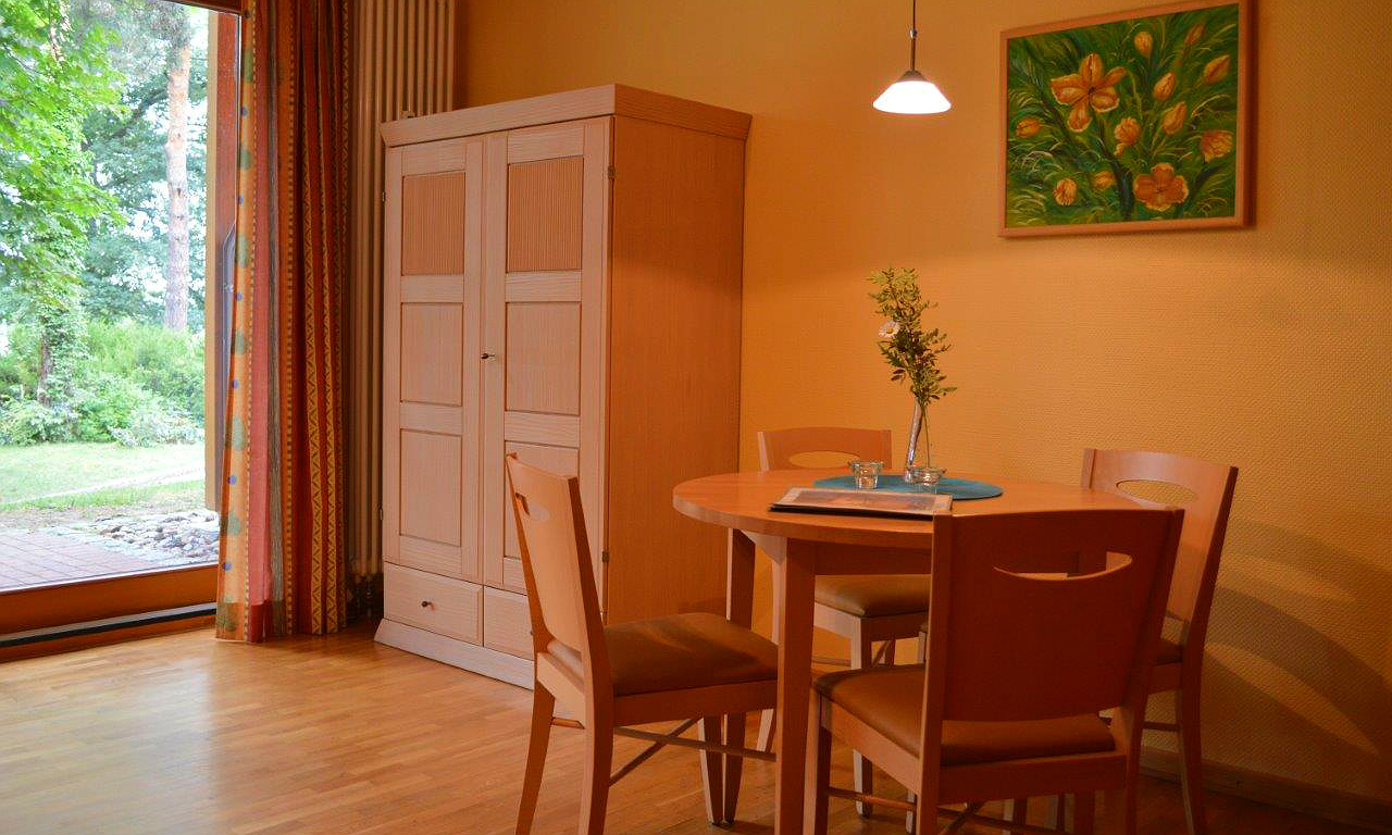 Der Ferienpark am Glubigsee liegt idyllisch mitten im Grünen direkt am Großen Glubigsee und verfügt über komfortable, unterschiedlich eingerichtete Ferienwohnungen und Ferienhäuser im skandinavischen Stil. Die mit Parkettböden ausgelegten Ferienhäuser vom Typ 2C bestehen aus je einem Wohn- und Schlafzimmer mit TV, Badezimmer mit Dusche und WC sowie aus einer komplett eingerichteten Küche mit Geschirrspüler, 2-Platten-Ceranfeld, Mikrowelle, Minibackofen und Kühlschrank. In den großen Ferienhäusern vom Typ 4C sind bei gleicher Ausstattung sogar zwei Schlafräume mit Platz für bis zu fünf Erwachsene oder zwei Erwachsene und fünf Kinder. Auf den möblierten Terrassen lässt es sich beim Blick auf Wald oder See herrlich entspannen.