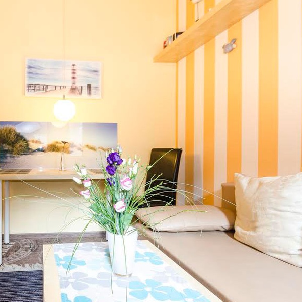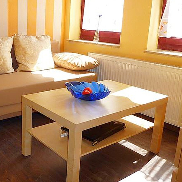 Die hellen Ferienwohnungen Nautilus und Schwerin verfügen über ein Schlafzimmer eine Wohnküche mit gemütlicher Sitzecke und ein Bad mit Dusche.