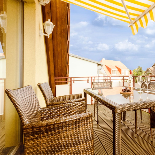 In der Ferienwohnung Schwalbennest können Gäste auf der gemütlichen Dachterrasse entspannen. Die zwei Schlafzimmer, das große und lichtdurchflutete Wohnzimmer sowie die voll ausgestattete Küche laden außerdem zum Verweilen ein.