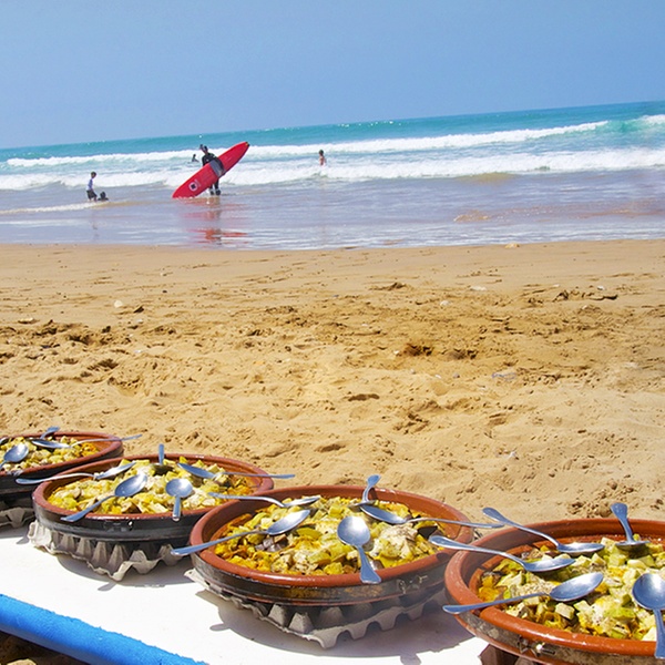 Der Ort Tamraght befindet sich an der marokkanischen Atlantiküste, nur etwa 15 Kilometer von Agadir entfernt. Aufgrund seiner optimalen Bedingungen gilt er als erstklassiger Surfer-Hotspot. Mit dem aktuellen Coupon kann zwischen verschiedenen Surf- und Stand-Up-Paddle-Kursen mit zwei mal drei Unterrichtsstunden pro Tag gewählt werden, die je nach Option auch weitere Aktivitäten wie Souk-Besuche, Yoga, Massage, Kamelreiten oder einen Ausflug in das Tal des Paradieses beinhalten. Fotos, Videos und eine Nachbesprechung am Ende des Aufenthaltes sind ebenfalls bereits inklusive.