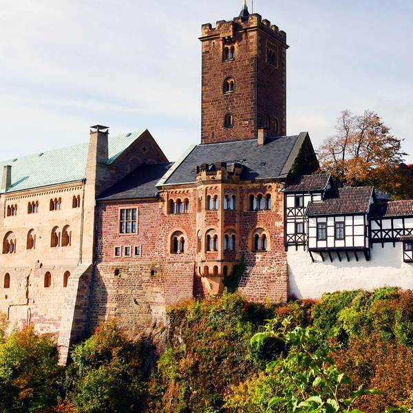 Wahrzeichen der thüringischen Stadt Eisenach ist die Wartburg, die aufgrund ihrer historischen und kulturellen Bedeutung seit 1999 als Weltkulturerbe der UNESCO eingetragen ist. Die Heilige Elisabeth lebte lange Jahre auf der Burg, der Sängerwettstreit wird in der Legende hier verortet, und schließlich versteckte sich der Reformator Martin Luther einige Zeit hier, getarnt als Junker Jörg, und fertigte in seiner kleinen Stube eine Übersetzung des Neuen Testaments an. In der Stadt Eisenach selbst wird dem wohl größten Sohn der Stadt gedacht: Johann Sebastian Bach. Eine sehenswerte Ausstellung im Bachhaus, einem kleinen, ockergelb getünchten Haus am Frauenplan, das im 19. fälschlicherweise als Geburtshaus des Komponisten identifiziert wurde, berichtet über Leben und Werk des bedeutendsten Mitglieds der Thüringer Bach-Familie. Abseits der Hochkultur finden Urlauber in der Umgebung von Eisenach zahlreiche Möglichkeiten zur aktiven Erholung, zum Beispiel bei Wanderungen auf dem Rennsteig, Kanutouren auf der Werra bei einem Spaziergang über den Baumkronenpfad im Hainich, Deutschlands größtem Urwald - als Naturerbe ebenfalls bei der UNESCO gelistet - oder im Winter beim Skifahren auf den zahlreichen Loipen und Pisten des Thüringer Waldes.