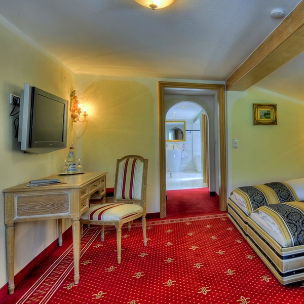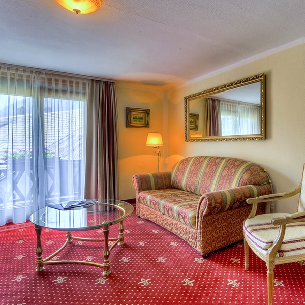 Jedes der ca. 30 bis 32 qm großen Deluxe-Doppelzimmer hat einen Balkon nach Süden oder Süd-Osten, mit Blick auf den Hochgrat oder Imberg und den Garten. Das Zimmer verfügt über einen Wohn- und Schlafraum mit einem Doppelbett mit den Maßen 1,8 m (Breite) und 2 m (Länge) und einen Fernseher. Des Weiteren gibt es ein Bad mit Dusche und WC.