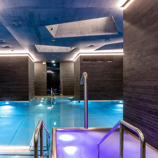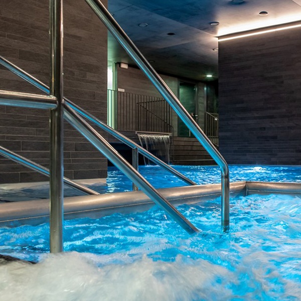 - Nutzung des umfangreichen Wellnessbereichs mit Pool mit Gegenstromanlage und Sprudelliegen, Whirlpool, Meditationspool mit Unterwassermusik, Fußmassagebecken, finnischer Sauna, Kräuterdampfbad, Dampfbad und Ruheraum