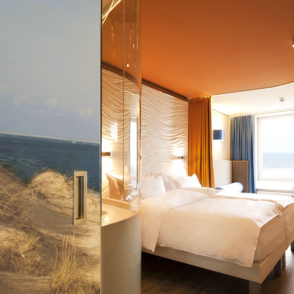 Das a-ja Warnemünde. Das Resort liegt in der ersten Strandreihe direkt an der autofreien Promenade. Die Gäste logieren in einem Komfort-Kingsize-Doppelzimmer mit formschönem Design und hochwertigen Materialien, genießen gemütlich in die Lounge gekuschelt den Panoramablick oder nutzen den Logenplatz als Heimkino mit einem 42-Zoll-TV. Alle Zimmer verfügen über Meerblick und sind mit einem großzügigen Loungebereich ausgestattet. Das Bad verfügt über eine Regendusche, die auf Wunsch den Blick in die Natur freigibt. Zudem besteht täglich der Zugang zur A-spa Badewelt mit beheiztem Meerwasser-Innen- und Panorama-Außenpool, in dem man 365 Tage im Jahr in der Ostsee schwimmen kann. Das 4000 m² große A-spa bietet seinen Gästen neben der Badewelt auch ein Saunahaus mit verschiedenen Saunen und wechselnden Aufgusszeremonien sowie einen Vitapark mit Cardio- und Kraftstrecke. Im NIVEA Haus lässt man sich bei leistbaren Massagen und Kosmetikanwendungen verwöhnen. Die zwei Bars „Barock“ und „Kleines Eck“ haben jeweils ihren ganz eigenen Charme und sind perfekte Orte, um die ereignisreichen Tage in Warnemünde entspannt bei einem Drink ausklingen zu lassen.