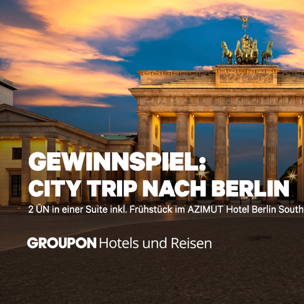Das Gewinnspiel endet am 23.02.2018 um 23:59 Uhr. Die Gewinner werden bis 26.02.2018 per E-Mail informiert. In dieser E-Mail wird dem Gewinner eine E-Mail-Adresse genannt und er wird aufgefordert seinen Gewinn an diese E-Mail-Adresse zu bestätigen. Wenn Groupon die Bestätigungs-E-Mail eines Gewinners nicht innerhalb von 5 Tagen nach der Benachrichtigung erhält, wird das Recht vorbehalten den Preis als „nicht akzeptiert" anzusehen und ihn einem anderen Teilnehmer anzubieten. Der Wert des Gewinns ist nicht auszahlbar. Es gelten die Teilnahmebedingungen.
