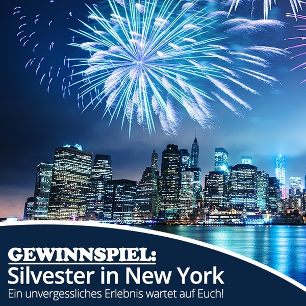 - Teilnahmebedingungen: Unter allen Teilnehmern wird 1 Reise nach New York über Silvester für 2 Personen verlost