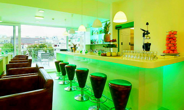 Das 400 Meter von Schloss Schönbrunn entfernte Hotel verfügt über 96 Zimmer, in denen modernes Design und Komfort eine harmonische Verbindung eingehen. Zur Ausstattung gehören italienische Lederbetten mit hochwertigem Lattenrost und Matratzen aus Viscoschaum, Holzboden und Möbel in edler „Silberschein“-Optik, weißer Flatscreen, Bad mit Erlebnisdusche, WC, großem Spiegel und mehr, Klimaanlage und kostenloses WLAN (im ganzen Hotel). Im 6. Stock des Hotels befindet sich die Rooftop-Bar, die neben einem üppigen Frühstücksbuffet auch mit einem Panoramablick auf die Gartenanlage, die Gloriette und Teile der Schlossanlage aufwartet. Apropos Frühstück: Das enthält Aufschnitt, Käse, Lachs, frisches Obst und mehr sowie frisch gepressten Orangensaft und Kaffeevariationen wie Espresso, Latte Macchiato und – natürlich – Wiener Melange.