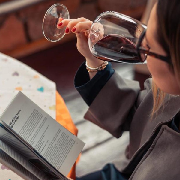 - Aperitif mit einem Glas Wein in der Bar Bistrot des Alt Spaur mit Blick auf die Brenta-Dolomiten