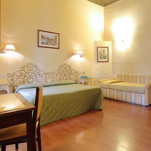 Die Medici, Michelangelo, Donatello, Galileo, Leonardo und Dante – so ziemlich alles, was in der Renaissance Rang und Namen hatte, drückte der Stadt Florenz ihren Stempel auf. Erste Anlaufstelle für Besucher der Stadt sind natürlich die Uffizien und die Accademia, in der Michelangelos David im Original bewundert werden kann. Ursprünglich zierte die große Statue aus weißem Marmor die Frontseite des Palazzo Vecchio, des Regierungspalastes der Medici an der Piazza della Signoria, heute steht dort eine Kopie. Zu den weiteren Sehenswürdigkeiten der toskanischen Stadt zählen die imposante Kathedrale Santa Maria del Fiore mit ihrer großen Kuppel von Brunelleschi und dem eleganten Campanile, der Corridoio Vasariano und der Ponte Vecchio über den Arno mit seinen zahlreichen Juweliergeschäften. Doch Florenz hat auch eine reiche Gegenwart zu bieten und ist ein bedeutendes Zentrum der Mode – Gucci hat sein Hauptquartier in der Stadt, und auch die anderen italienischen Luxusmarken haben hier ihre Dependencen. Die toskanische Kunstmetropole am Arno zählt nicht zuletzt wegen ihrer kulturellen Bedeutsamkeit zu den meist besuchten Städten der Welt. Als Wiege der Renaissance begeistert sie die Besucher beispielsweise mit einer umfassenden Sammlung klassischer Kunst in den Uffizien und ihrer zum UNESCO-Weltkulturerbe gehörenden Altstadt mit der Piazza della Signoria. Die populäre Kopie der David-Statue von Michelangelo kann an der Frontseite des Palazzo Vecchio bestaunt und in der Accademia delle Arti del Diegno mit dem Original verglichen werden. Ein weiteres Highlight ist natürlich ein Spaziergang über die Ponte Vecchio – die älteste Brücke über den Arno in Florenz, welche als einzige den zweiten Weltkrieg schadlos überstanden hat. Vom Hotel aus sind sämtliche dieser Sighseeing-Hotspots fußläufig erreichbar.
