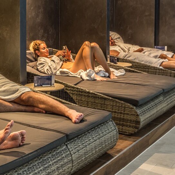 Im exklusiven Wellness-Bereich erwartet die Gäste pure Entspannung. Innen- und Außenpool, finnische Sauna, Dampfbad, Brechelbad, Steinbad-Sauna und ein Ruheraum mit Salzsteinwand sorgen für vollkommene Erholung. Der Wellnessbereich ist täglich bis Mitternacht geöffnet – ideal, um zu jeder Tageszeit neue Kraft zu tanken. Diverse Massagen und Spa-Anwendungen stehen gegen Gebühr und mit Vorabreservierung zur Verfügung.