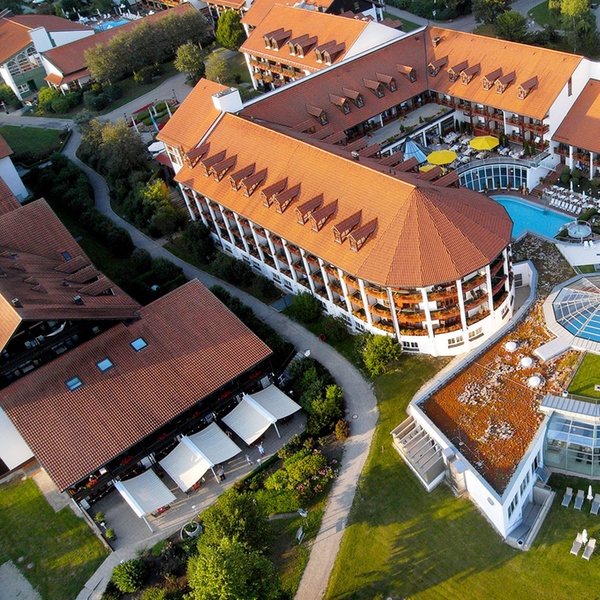 Der staatlich-anerkannte Luftkurort Bad Griesbach befindet sich im niederbayerischen Rottal. Nur eine halbe Autostunde von Passau entfernt lockt das Dreiquellenbad mit seinen berühmten Thermen und einer lieblichen Landschaft. Aber nicht nur Erholungssuchende kommen hier auf ihre Kosten – Bad Griesbach ist auch ein Dorado für Golfsportler. Im Hotel erwartet die Gäste auf sage und schreibe 4400 Quadratmetern „Quellness“ – mehr als nur Wellness. So darf hier zum Beispiel im Thermal-Innen-Pool mit Schwallbrausen luxuriös entspannt werden, bevor im temperierten Außenbecken, in zwei Hot-Whirl-Pools oder im Kneipp-Tretbecken erholsame Momente anstehen. Besondere Highlights sind außerdem die mit zarten Düften aromatisierte Dampfgrotte, die Sauna und das Sanarium, die Erlebnisduschen sowie der Frischluftraum oder die Liegewiese hoch über dem Rottal.
