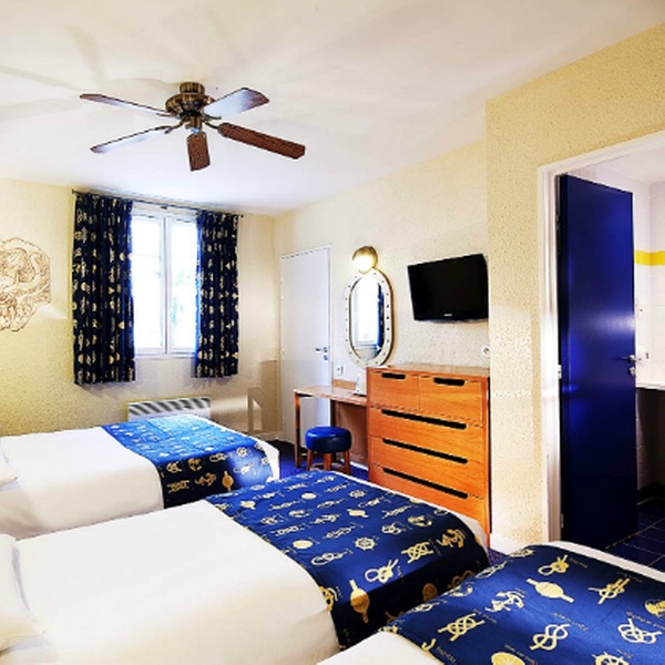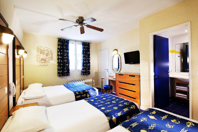 Das familienfreundliche Algonquin Explorers Hotel* bietet einen kostenlosen Shuttleservice zu den nahegelegenen Themenparks und zum Bahnhof Marne-la-Vallée – Chessy. Spaß und Abenteuer für kleine Piraten und Wasserratten bieten das 200 qm große Hallenbad „Secret Lagoon“ mit Wasserspielplatz und Rutschen, das Bällebad „Scally Wagg´s Jungle Adventure“, das Piratenschiff und das kindgerechte Fitness-Studio. Für ein unvergessliches Kino-Erlebnis sorgt das 6D-Kino. Ein Ticket gibt es mit dem heutigen Coupon für jeden Hotelgast mit dazu. Optional ist im heutigen Deal ein Tagesticket für einen bzw. ein Zwei-Tagesticket für je einen Themenpark pro Tag enthalten. Die Familienzimmer können bis zu sechs Personen beherbergen und sind wie die Doppel- und Vierbettzimmer modern ausgestattet mit Flachbild-TV, Schreibtisch, kostenlosen WLAN-Zugang und Föhn. Parkplätze stehen den Gästen kostenlos zur Verfügung. Groupon-Kunden profitieren zusätzlich von einem 5 €-Wertgutschein für zwei Personen anrechenbar auf Speisen und Getränke im Restaurant „Captain´s Library“, „Plantation“, bei Marco´s Pizza oder Brioche Dorée.