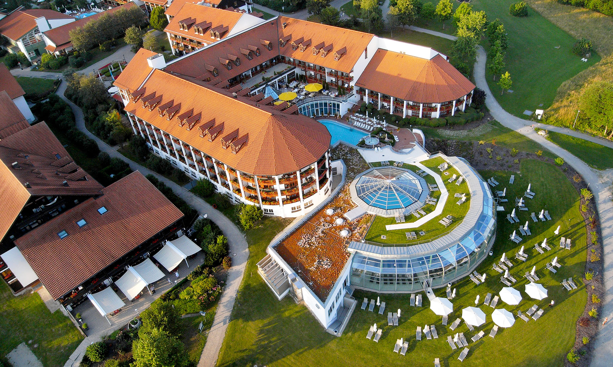 Der staatlich-anerkannte Luftkurort Bad Griesbach befindet sich im niederbayerischen Rottal. Nur eine halbe Autostunde von Passau entfernt lockt das Dreiquellenbad mit seinen berühmten Thermen und einer lieblichen Landschaft. Aber nicht nur Erholungssuchende kommen hier auf ihre Kosten – Bad Griesbach ist auch ein Dorado für Golfsportler. Im Hotel erwartet die Gäste auf sage und schreibe 4400 Quadratmetern „Quellness“ – mehr als nur Wellness. So darf hier zum Beispiel im Thermal-Innen-Pool mit Schwallbrausen luxuriös entspannt werden, bevor im temperierten Außenbecken, in zwei Hot-Whirl-Pools oder im Kneipp-Tretbecken erholsame Momente anstehen. Besondere Highlights sind außerdem die mit zarten Düften aromatisierte Dampfgrotte, die Sauna und das Sanarium, die Erlebnisduschen sowie der Frischluftraum oder die Liegewiese hoch über dem Rottal.