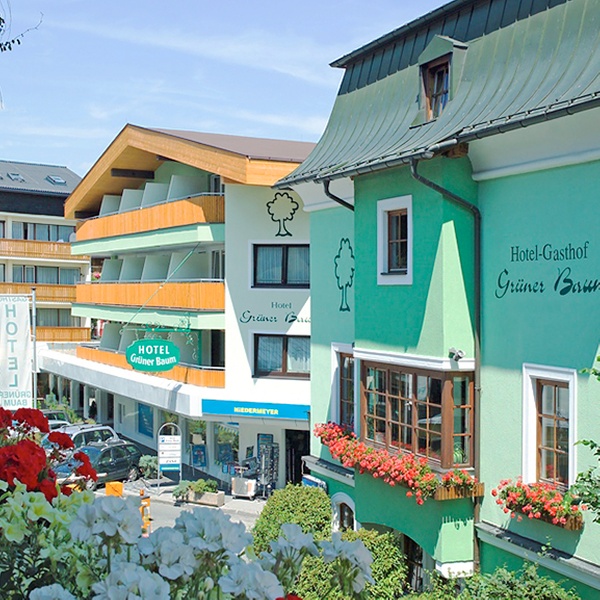 Das familiengeführte Hotel Grüner Baum mit Aussicht auf die Schmittenhöhe befindet sich in der Fußgängerzone von Zell am See, nur wenige Gehminuten vom Seeufer und den Seilbahnen entfernt. Die neu renovierten, komfortablen und modern eingerichteten Classic-Doppelzimmer mit schalldichten Fenstern verfügen über ein Badezimmer mit großer Wohlfühldusche und Föhn sowie Flachbild-TV mit Kabelempfang, WLAN, Telefon und einen Safe. Der Wellnessbereich bietet zwei Saunen und einen Ruhebereich. Im À-la-carte-Restaurant werden klassisch österreichische Gerichte und Spezialitäten aus der hoteleigenen Metzgerei serviert. Im Sommer können die Gäste auch im Biergarten speisen. Im Greens Pub und in der Cocktailbar Greens XL können die Gäste Getränke und gute Musik genießen.