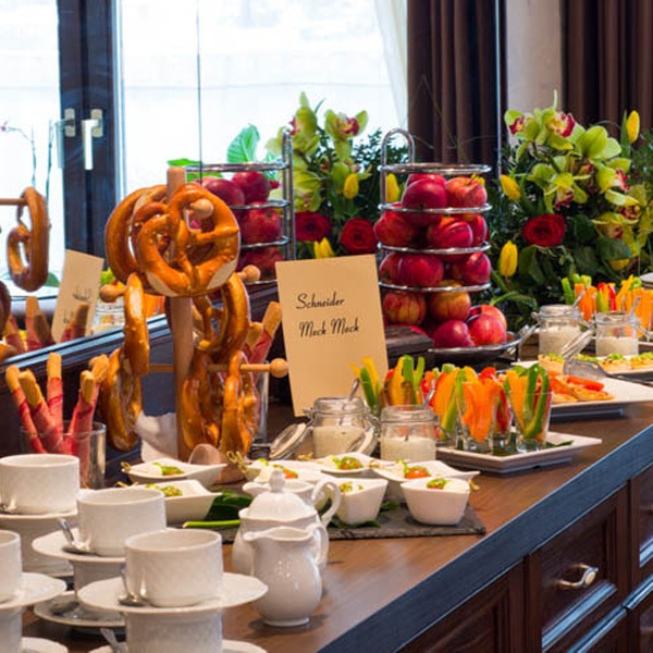 Morgens wird im Hotel ein reichhaltiges Frühstücksbuffet angeboten. Das im traditionellen Stil gehaltene Restaurant serviert regionale deutsche Küche. An der Bar Luis, die an jedem Wochenende geöffnet ist, werden Cocktails und lokales Bier verkostet. Bei gutem Wetter werden auch auf der Sommerterrasse Getränke angeboten.