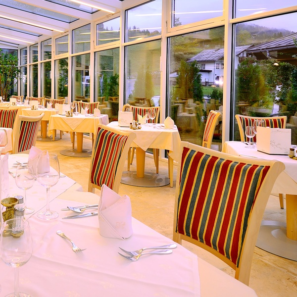 - Halbpension mit reichhaltigem Frühstücksbuffet, Mittagssuppentopf, Kaffee- und Kuchen am Nachmittag, 4-Gänge-Wahlmenü mit Salatbuffet sowie Tee- und Saftbar an der Wellness-Bar