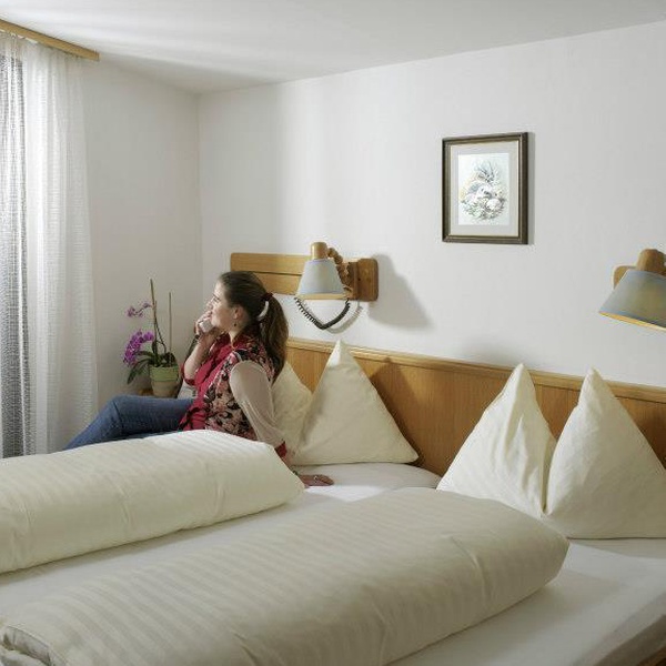 Es gibt drei Typen von Doppelzimmern: ”Enzian”, “Edelweiß” und “Turmzimmer”.