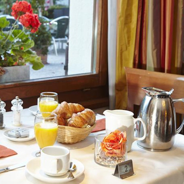 Das À-la-carte-Restaurant Jarno und das Hotelrestaurant mit Sonnenterrasse bieten traditionelle Schweizer Küche und eine große Auswahl an Schweizer und internationalen Weinen.