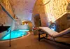 - Spa-Parcours mit 34°C warmer Hydromassagewanne mit Chromotherapie und Aromatherapie, Wasserfall mit Nackenstrahl in der Hydromassagewanne, Sauna, türkischem Bad, 2 Erlebnisduschen mit Chromotherapie und 2 Steinliegen als Entspannungsbereich