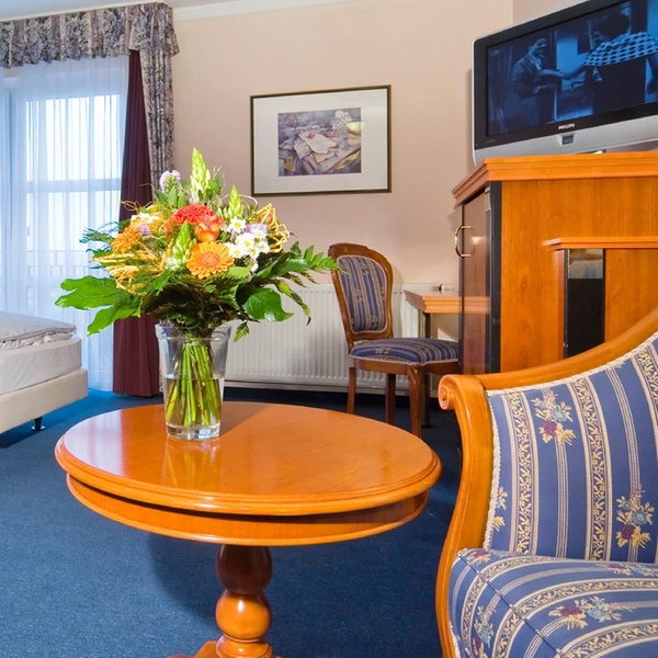 Das Hotel Residnez Bad Frankenhausen liegt in Bad Frankenhausen und bietet den Besuchern Natur und Geschichte auf engstem Raum. Die Besucher können sich von tollen Sehenswürdigkeiten wie zum Beispiel: dem 81 m hohen Kyffhäuser-Denkmal, der Barbarossahöhle oder dem Panorama-Museum beeindrucken lassen. Die Gäste logieren im geräumig und hell eingerichteten Standard- oder Komfort-Doppelzimmer. Das Restaurant “Barbarossa” mit einer Panoramaterrasse bietet den Gästen eine leichte, gesunde und frische Küche mit internationalen sowie traditionellen Spezialitäten aus der Region. Nach einem ereignisreichen Tag lädt die Piano-Bar “Kaiser-Wilhelm” zum Verweilen ein. Im Wellnessbereich des Hotel können die Urlauber neue Kraft schöpfen, vom Alltag abschalten und die Seele richtig baumeln lassen. In der hoteleigenen “VenusVital” Therme erwartet die Besucher neben einer Sauna, einem Römischen Dampfbad eine erholsame Infrarotwärmekabine und ein 62,5 qm großes Solebad aus natürlichen Quellen.