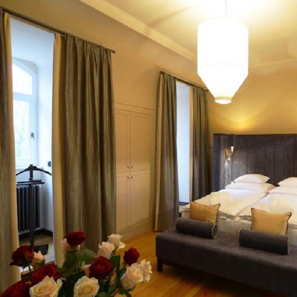 Die modern eingerichteten, luxuriösen Zimmer verfügen über große Boxspringbetten, Einbaukleiderschränke mit Safe und Minibar, einen Schreibtisch, ein Telefon, Internet, Flachbild-TV, ein Barockfenster mit Blick in den Schlosspark, ein großes Badezimmer mit Wellnessdusche, Haarfön und Kosmetikspiegel.