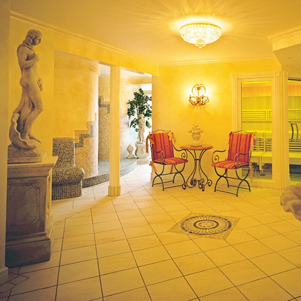 - Täglicher Zugang zur hoteleigenen Sauna- und Wohlfühllandschaft mit finnischer Sauna, Heusauna, Blütenlaconium mit Farblicht- und Kräuterstimulation, Dampfbad, Meeresklimakabine, Ruheraum, „Raum der Sinne“ mit temperierten Wasserbetten, Thermal-Trinkbrunnen, Kneippbecken, Sonnenterrasse