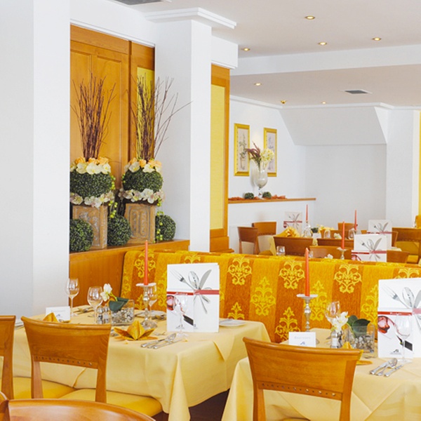Im hoteleigenen Restaurant werden regionale Spezialitäten und Speisen der internationalen Küche serviert. Die Gäste können den Abend an der gut sortierten Bar ausklingen lassen.