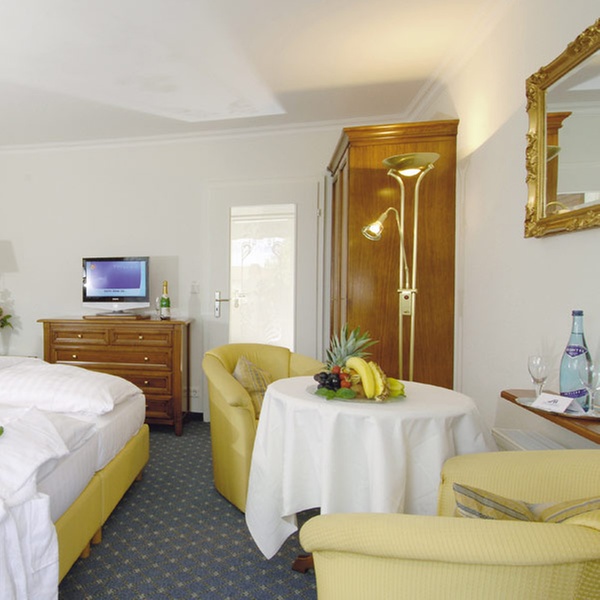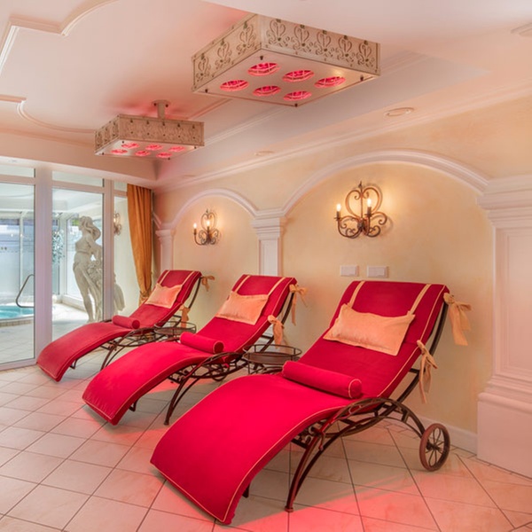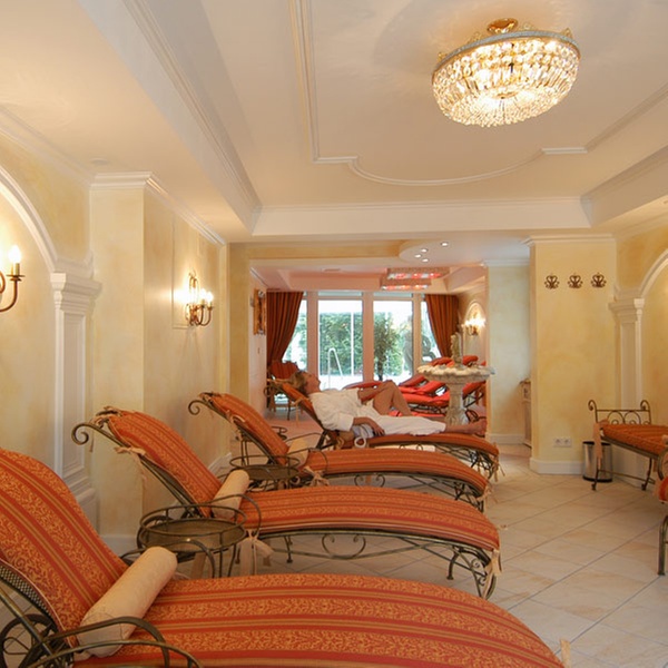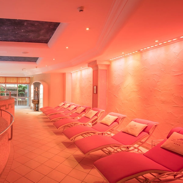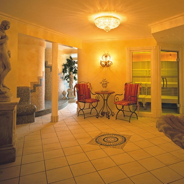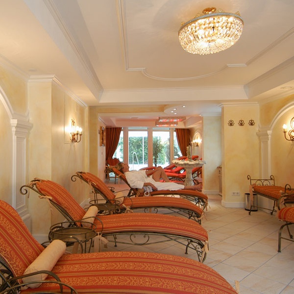- Täglicher Zugang zur hoteleigenen Sauna- und Wohlfühllandschaft mit finnischer Sauna, Heusauna, Blütenlaconium mit Farblicht- und Kräuterstimulation, Dampfbad, Meeresklimakabine, Ruheraum, „Raum der Sinne“ mit temperierten Wasserbetten, Thermal-Trinkbrunnen, Kneippbecken, Sonnenterrasse
