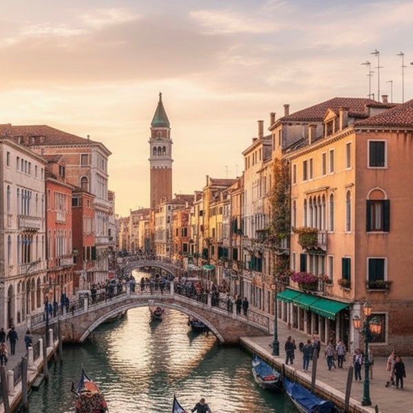 Schönheit, Zauber und die Geschichte der Lagunenstadt lassen sich auf einer Entdeckungstour zwischen den 118 kleinen Inseln, 400 Brücken und 177 Kanälen erkunden. Mit dem Wasserbus (Vaporetto) geht es zum Markusplatz, und in nur zehn Gehminuten erreicht man vom Hotel aus den Piazzale Roma. Von hier aus kann auch ein Shuttlebus zum Flughafen genommen werden. Die Brücke ""Ponte della Costituzione"" wurde vom spanischen Architekten Santiago Calatrava gestaltet und ist die vierte Brücke, die den Canal Grande in Venedig überspannt und für Fußgänger gestaltet ist. Vom Piazzale Roma gelangt man über die Brücke zum Bahnhof Santa Lucia. Die einmalige Inselstadt an der italienischen Adria ist voller Postkartenmotive, die jährlich unzählige Touristen aus aller Welt beeindrucken. Allen voran die Wahrzeichen Venedigs: die wunderschöne Rialto-Brücke, die über eine der ungewöhnlichsten Hauptstraßen der Welt, den Canal Grande, führt und der berühmte Markusplatz mit der grandiosen Basilica San Marco. Kunstliebhaber dürfen sich über viele imposante Bauwerke wie den Markusdom mit seinem 98 Meter hohen Glockenturm, den sogenannten Campanile, oder den prächtigen Dogenpalast freuen, der eine sehenswerte Sammlung von Bildern und Skulpturen aus der italienischen Renaissance beherbergt. Und natürlich gehören zu einem Venedig-Besuch neben Stadtspaziergängen durch reizende Gässchen auch eine Fahrt mit der Gondel und das Taubenfüttern auf dem herrlichen Markusplatz. Einen Besuch wert ist auch die nördlich von Venedig gelegene Insel San Francesco del Deserto, wo einst der Heilige Franz von Assisi in einem wunderschönen Kloster lebte.