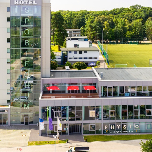 Das moderne Hotel Sportforum erwartet seine Gäste in Rostock, neben der DKB-Arena und nur wenige Gehminuten vom Stadthafen an der Warnow entfernt. Die komfortabel eingerichteten Teamzimmer (Doppelzimmer) des Hotels sind mit zwei Betten, Tisch, Fernsehgerät, Telefon und Badezimmer mit Dusche ausgestattet. Das hoteleigene Restaurant serviert frisch zubereitete Spezialitäten der regionalen Küche und in der Bar können die Gäste am Nachmittag einen Cappuccino und am Abend einen Cocktail genießen.