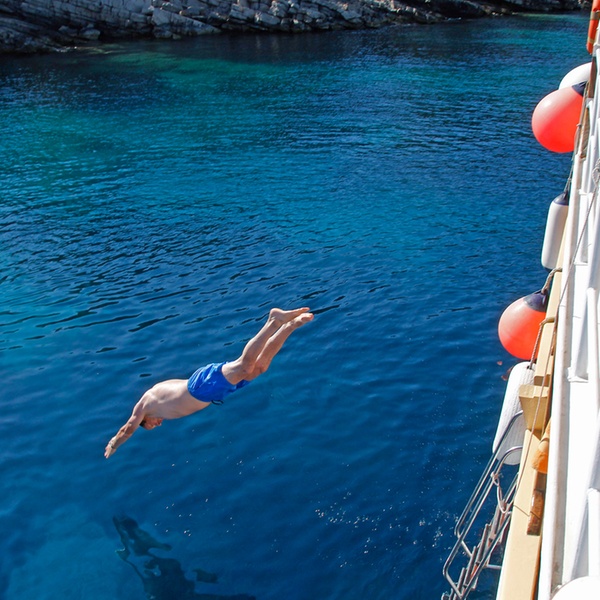 An Bord genießen die Gäste 8 Tage entspannende Badepausen in den schönsten Buchten der Kvarner Bucht und entdecken abends die Übernachtungshäfen auf eigene Faust. In Rab und Zadar haben sie die Möglichkeit, an einer Stadtführung teilzunehmen, die bereits im Preis inbegriffen ist. Während der Kreuzfahrt kann man an Bord entspannen, es stehen auch ausreichend schattige Plätze zur Verfügung. Das Schiff ankert während der Mittagszeit in abgeschiedenen Buchten mit kristallklarem Wasser, wo man baden oder auch beim Schnorcheln die Unterwasserwelt entdecken kann.