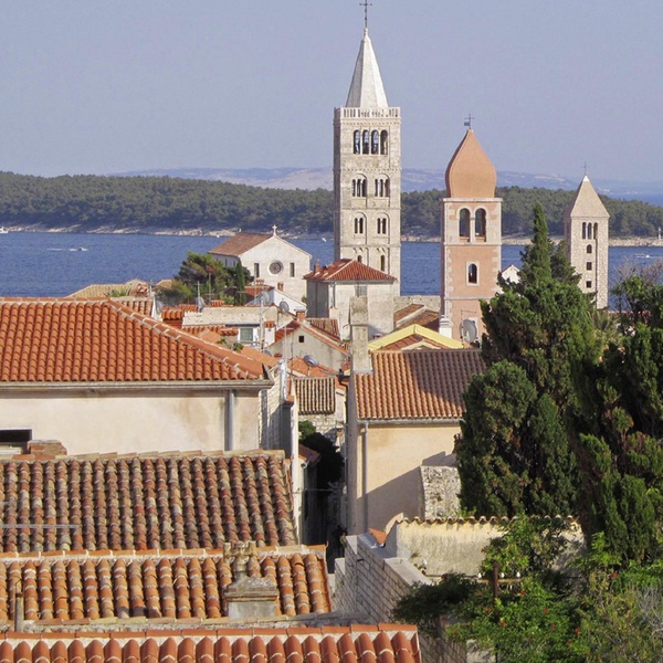 Nach dem Frühstück Abfahrt in Richtung der nächsten Insel – Rab. Nach etwa zwei Stunden Fahrt wird der Anker in einer romantischen Bucht geworfen – ausgiebig Zeit zum Baden und Sonnen. Ankunft in der wunderschönen Stadt Rab am späten Nachmittag, anschließend Führung durch die Altstadt. Die Altstadt von Rab mit ihren markanten Glockentürmen erstreckt sich auf einer schmalen, felsigen Landzunge, auf drei Seiten von Wasser umgeben. Drei Straßen durchziehen die Altstadt – die „Untere Straße“ mit Cafés und Kneipen, die „Mittlere Straße“ mit Boutiquen, Souvenirshops und Eisdielen, und die „Obere Straße“ die zu den vier Kirchen mit ihren Glockentürmen führt. Übernachtung in Rab.