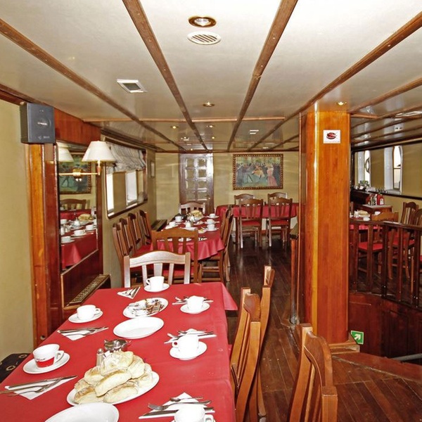 Die Crew (Kapitän, Koch und Matrosen) kümmern sich um leibliches Wohl ihrer Gäste. Die Halbpension wird im Salon des Schiffes serviert, dort steht den Gästen auch eine Bar für kalte und warme Getränke zur Verfügung.