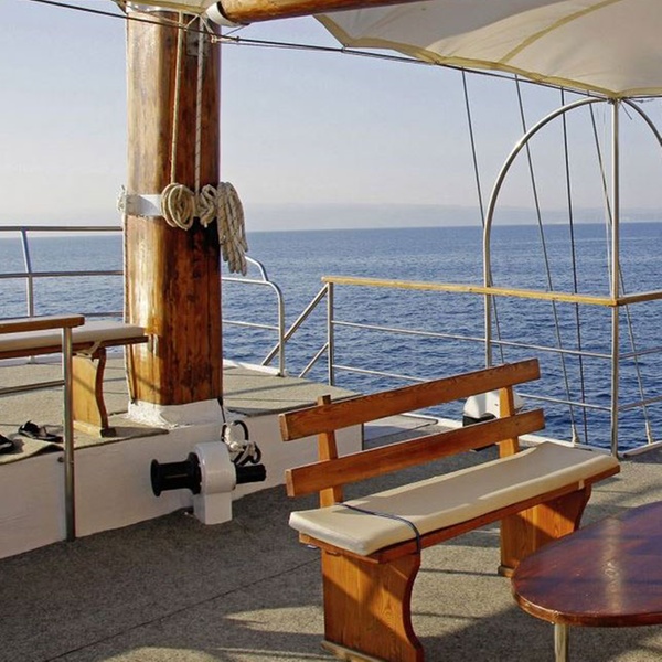 An Bord genießen die Gäste 8 Tage entspannende Badepausen in den schönsten Buchten Dalmatiens und entdecken abends die Übernachtungshäfen auf eigene Faust. In Rab und Zadar haben sie die Möglichkeit, an einer Stadtführung teilzunehmen, die bereits im Preis inbegriffen ist. Während der Kreuzfahrt kann man an Bord entspannen, es stehen auch ausreichend schattige Plätze zur Verfügung. Das Schiff ankert während der Mittagszeit in abgeschiedenen Buchten mit kristallklarem Wasser, wo man baden oder auch beim Schnorcheln die Unterwasserwelt entdecken kann.