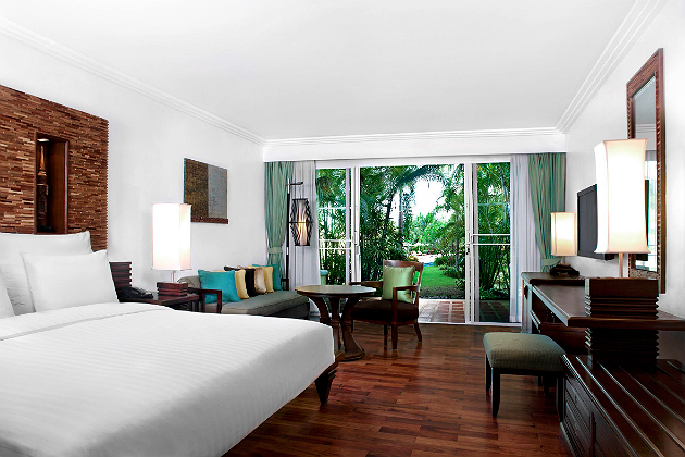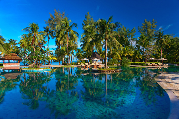 Im luxuriösen und strandnahen Le Méridien Khao Lak Beach & Spa Resort bieten Lagoon Pool, Spa-Pool sowie Familienpool mit Kinderbecken kühle Erfrischung bei heißen Temperaturen. Die angebotenen Sportmöglichkeiten sind vielfältig und reichen von Tennis über Beach- und Pool-Volleyball bis zu Pétanque und Billard. Zusätzlich können im Resort gegen Aufpreis Katamarane, Kajaks und Fahrräder ausgeliehen werden. Für die Kleinsten gibt es einen Kinderspielplatz sowie tagsüber im Penguin Club eine unterhaltsame Kinderbetreuung. Die geräumigen Deluxe Doppelzimmer sind modern und elegant ausgestattet mit Teakholzböden, zwei Einzelbetten oder einem King-Size-Bett, einem Sitzbereich mit Tagesbett und Sessel, 40-Zoll LCD-Flachbildfernseher mit Satellitenempfang sowie Minibar, Wasserkocher, Bügelbrett mit Bügeleisen und Safe. Das Badezimmer verfügt zudem über ein Panoramafenster zum Wohnbereich sowie Badewanne und Dusche. Am Morgen genießen die Reisenden eine innovative Interpretation des traditionellen Frühstücks, das durch außergewöhnliche Kreationen des Küchenchefs Jean-Georges Vongerichten bezaubert. Wer sich in einem der acht Wellnesstempel des Spa-Bereichs verwöhnen lassen möchte, kann gegen Gebühr unterschiedliche Anwendungen und Massagen buchen.
