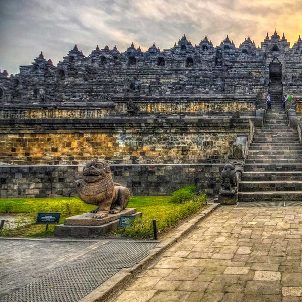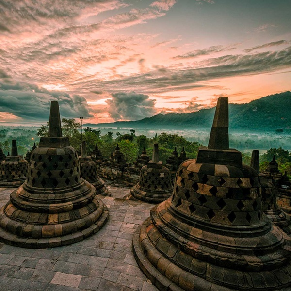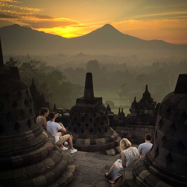Nach dem Frühstück führt die Reisenden der Vormittag durch die Weltkulturerbestätte Borobudur. Die Besucher werden durch einen der größten buddhistischen Tempel der Welt geführt und sie erfahren mehr über die Geschichte hinter dieser unglaublichen Architektur. Konstruiert aus massivem Vulkan- und Flussgestein, wurde der Tempel nur mit menschlicher Kraft erbaut, ein Prozess der 75 Jahre andauerte. Die einstige Bedeutung dieses beeindruckenden Tempels lässt sich an den bildlichen Reliefs erahnen. Am Ausgang des Tempels erwartet die Re ein Fahrrad, mit dem Sie die javanische Landschaft hautnah erleben können, während Sie zu einem lokalen Dorf fahren. Gewinnen Sie einen Eindruck von dem alltäglichen Leben der Dorfbewohner und gönnen Sie sich in einer Plantage eine erfrischende junge Kokosnuss. Besuchen Sie mit dem Auto den nahe gelegenen Mendut Tempel, dessen Errichtungen an Pyramiden erinnern und die drei eindrucksvollen Steinstatuen beherbergen. Ein Stück weiter ist der Pawon Tempel bekannt für seine einfache, doch sehr schöne Symmetrie. Mit einer wundervollen Aussicht auf die Reisfelder wird Ihnen ein spätes Mittagessen serviert. Dann fahren Sie zurück nach Yogyakarta. Übernachtung im Hotel. (F/M)
