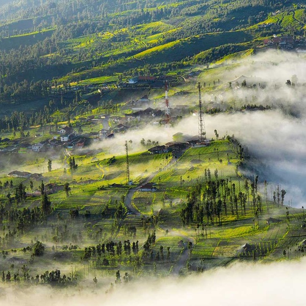 Am Morgen werden die Reisenden zum Bahnhof von Yogyakarta gebracht, wo sie in den Zug nach Mojokerto steigen (07:25 - 11:23 Uhr). Die Reisenden können die Landschaft auf der Strecke nach Ostjava genießen. In Mojokerto erwartet die Besucher ein Fahrer für die ca. vierstündige Fahrt in das Dorf Tosari am Rande des Bromo Tengger Semeru Nationalparks. Auf dem Weg dorthin besuchen die Resienden Trowulan, das einstmalige Zentrum des hinduistischen Reiches Majapahit (1293 - 1500), dasin seiner Blütezeit im Rahmen des Gewürzhandels von Sumatra und der malaiischen Halbinsel im Westen bis Westpapua im Osten Tribute einforderte. Bei einer Mittagspause mit Verköstigung im Hafen von Pasuruan können die Reisenden traditionelle Holzboote und einheimische Fischer bei ihrer Arbeit beobachten. Die weitere Fahrt geht direkt nach Tosari, das auf einer Höhe von 1700 m über dem Meeresspiegel gelegen ist und ein angenehm kühles Klima aufweist. Abendessen im Hotel. Übernachtung in Tosari. (F/M/A)