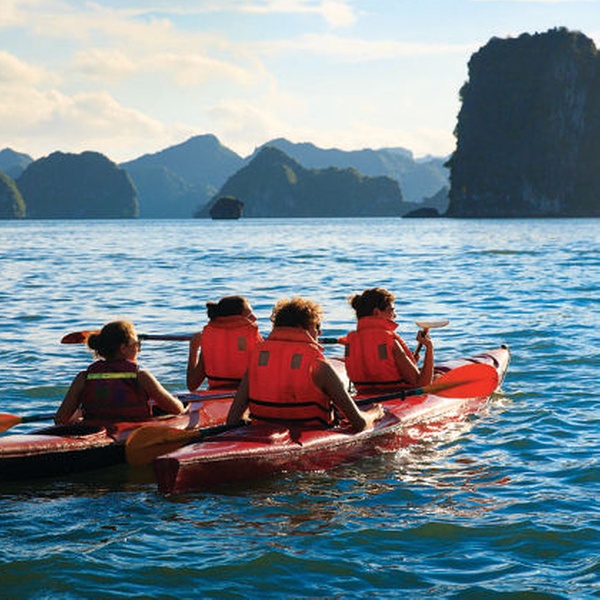 Nach dem Frühstück fahren Sie in die ‘‘Bucht des herabsteigenden Drachens’’. Check in Board am Mittag und Kreuzfahrt durch die Halong-Bucht. Die Halong-Bucht gehört zu den Weltwundern mit über 1.500 km2 und 3.000 Inseln. Die Bucht ist voller Meeresfrüchte (Langusten, Krebse, Krabben und Tintenfische), die für Sie zum Mittagessen an Bord des traditionellen vietnamesischen Holzsegelschiffs frisch zubereitet werden. Während der 4-stündigen Kreuzfahrt durch die atemberaubende Landschaft werden die Urlauber die Gelegenheit bekommen, eine der zahllosen Grotten zu besichtigen und im smaragdgrünen Wasser zu schwimmen.