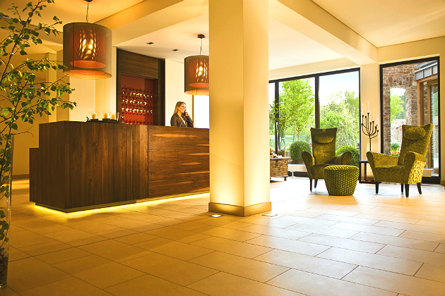 Die Luft gilt als eine der reinsten in Deutschland. Knapp unterhalb der romantischen Bruchsteinmauern dieses edel sanierten First-Class-Hotels liegt das alte Köhlerdorf Langweiler mit 260 liebenswerten Einwohnern wie hingewürfelt am Hang. Wildromantische Täler, stille Wälder, Burgruinen, ursprünglich schöne und wilde Areale, durchzogen von traumhaften Wegen und Stegen liegen rund um das Hotel. Es locken bunte Wiesen, sanfte Hänge, Hochwald mit üppigem Baumbestand und schroffer Fels in die pittoreske Natur. Organisch in den Naturpark Saar-Hunsrück eingebettet liegt das alte Kloster in einer behutsam gestalteten Parklandschaft. Pflanzinseln, Bäume, Aufenthalts- und Freizeitflächen vernetzen sich mit alten Klosterpfaden. Eine besondere Magie an diesem Ort, Lebensart und Zeitgefühl nehmen den Ankömmling gleich ein. Es ist wie ein Eintauchen in eine andere Welt. Trendverwöhnte Städter sind von diesem Ort ebenso bezaubert wie anspruchsvolle Wanderer, die in der Abgeschiedenheit des Naturparks Saar-Hunsück persönliche Gastlichkeit, Ruhe und Komfort suchen. Sport-Fans sind begeistert: Nur ein paar Kilometer vom Hotel entfernt kann man neue Greens entdecken, auf gleich drei hervorragenden Golfplätzen. Ein Outdoor-Tennisplatz gehört zum Hotel. Zum Mountainbiking, Nordic Walking und Wandern starten Sie direkt vom Haus aus. 15 Autominuten weiter beginnt der Wintersportspaß auf der Hunsrück-Loipe, zwei je 800 m lange Pisten am 818 m hohen Erbeskopf locken Skifahrer und Rodel-Helden. Die Region ist zudem ein Geo-Paradies! Ergründen Sie die Magie der Erdgeschichte in diesem einzigartigen Teil des Rheinischen Schiefergebirges! Erfahren Sie die den spannenden Lebenslauf unseres Planeten im Spiegel von Steinen, Mineralien und Fossilien. Funkelnde Kristalle, Quarze, Calcite, Erzmineralien oder Edelsteindrusen erwarten Sie in Steinbrüchen, Geoparks, alten Bergwerken, Museen, historischen und modernen Schleifereien. 20 Minuten Fahrt auf der berühmten Deutschen Edelsteinstraße sind es bis zur Gesteins-Metropole Idar-Oberstein.