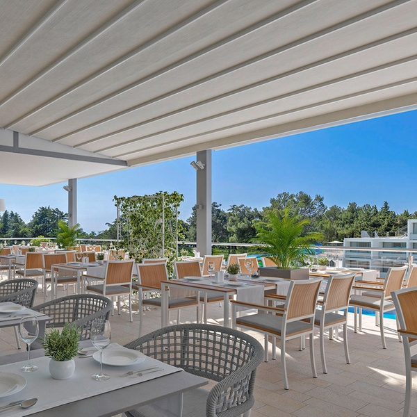 Das hoteleigene, moderne, beeindruckende Show-Cooking-Restaurant mit vergrößerter Panoramaterrasse serviert kroatische und internationale Gerichte aller Art.