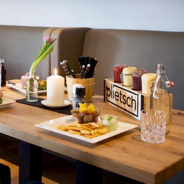 Teil von Krögers Hotel ist das Restaurant „plietsch“. Hier treffen sich die Menschen aus der Gegend, um den Abend beim Glas Bier oder Wein ausklingen zu lassen. Für die Hotelgäste ist das eine gute Gelegenheit, die Einheimischen und ihre kulinarischen Gewohnheiten zu beobachten. Das Innere des Restaurants verbindet ländliche Tradition und moderne Urbanität, ähnlich wie kulinarisches Angebot, das vom Fisch aus lokalem Fang bis zum US Prime Beef reicht. In der an das Hotel angeschlossenen Bar können die Gäste diverse Getränke und Cocktails genießen.