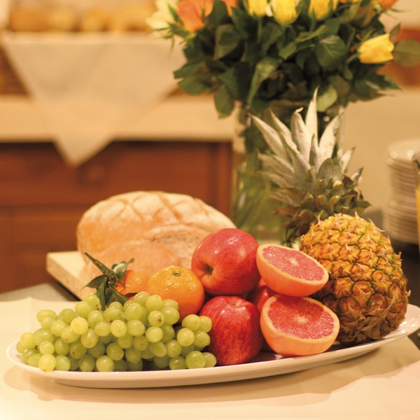 Im gemütlichen Speisesaal werden gesunde Gerichte mit folgenden Malhzeiten im Laufe des Tages angeboten: Ein regionales Frühstücksbuffet am Vormittag, ein Lunchbuffet zur Mittagszeit und die „Rustikale Brotzeit“ am Abend.