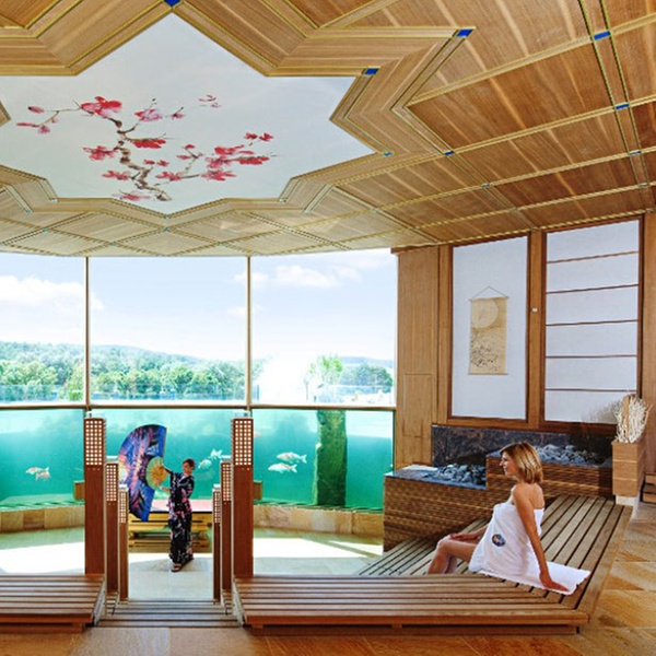 - Fest reservierter Liegeplatz in der Therme (auf Wunsch Saunalandschaft der Therme zubuchbar: 9 € pro Person)